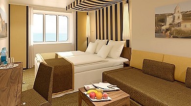 Vo všetkých kajutách sa nachádza regulovateľná klimatizácia, safe, kúpeľňa so sprchou, sušič na vlasy, telefón, Tv s plochou obrazovkou.