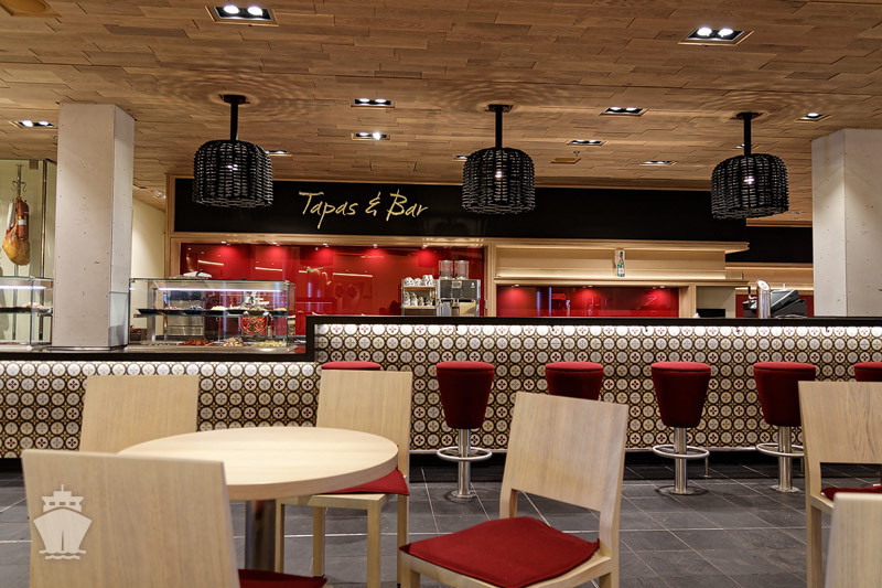 AIDA Plaza cez 2 paluby s barmi a obchodíkmi slúži ako miesto stretnutí.