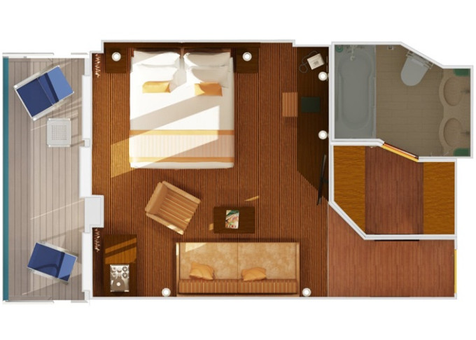 | GS - Grand Suite 32 m² + balkón 8 m². 7. paluba stred. Výhody Suite. | 6 498 € 3 249 € za osobu | ||