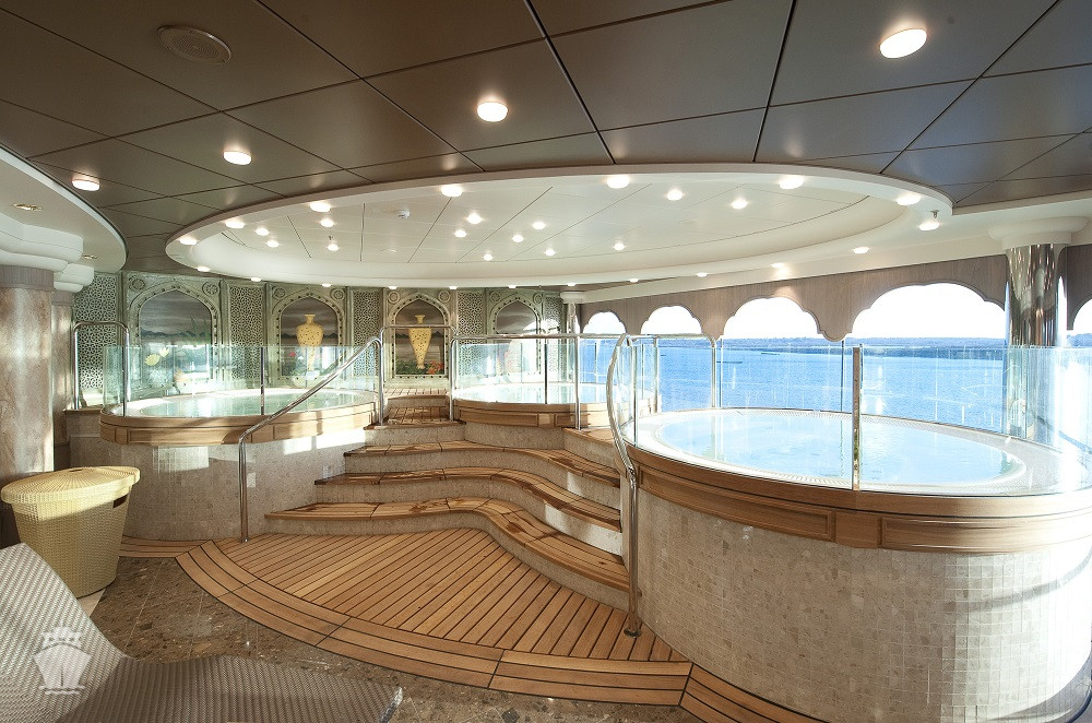 - Používanie zariadení lode: bazény, vírivky a lehátka, plážové osušky, fitnescentrum ...