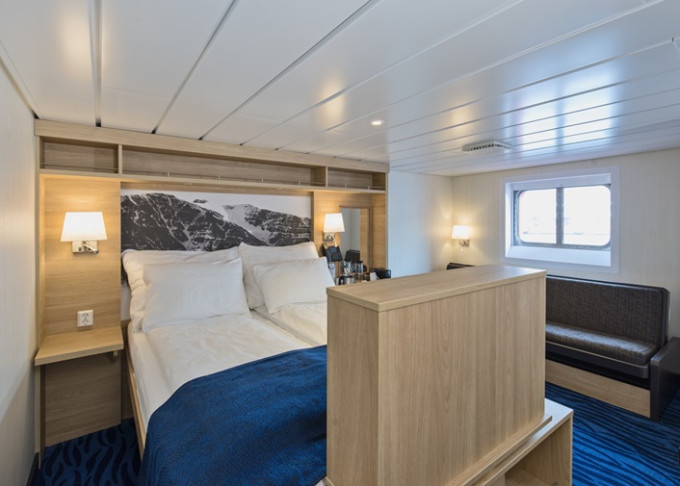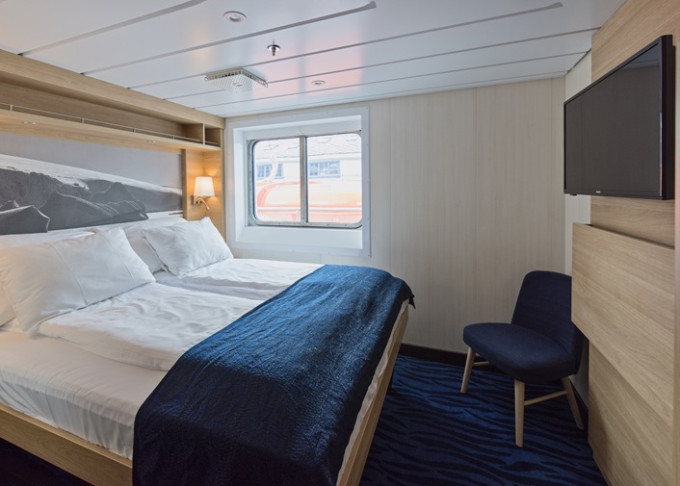 | QJ - Vonkajšia kajuta Arctic Superior / obmedzený výhľad 14-18 m². Neotvárateľné okno s obmedzeným výhľadom. Tv, varná kanvica. 6. paluba. Max 4 osoby. | 11 028 € 5 514 € za osobu | ||