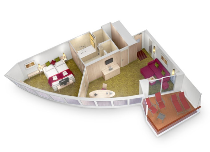 SB - Suite PREMIUM od 49 m² / balkón od 16 m². Max 4 osoby. Cenový model Premium + výhody Suite. 6 660 € 3 330 € za osobu