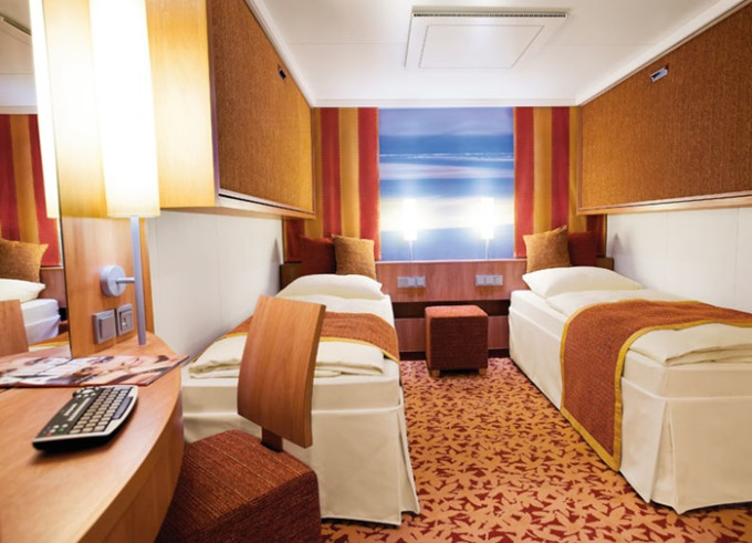 CA - Vonkajšia kajuta PREMIUM / obmedzený výhľad od 14 m². Neotvárateľné okno / obmedzený výhľad. Max 4 osoby. Cenový model Premium. 2 410 € 1 205 € za osobu