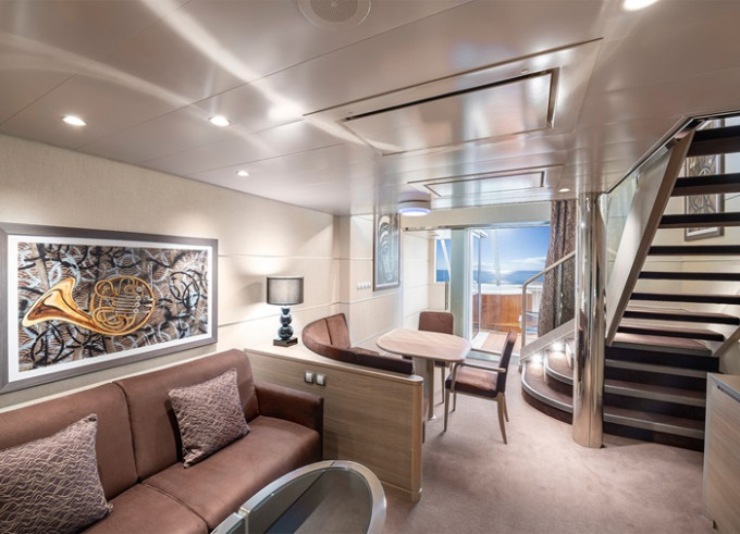 | YJD - Yacht Club Duplex Suite s vírivkou 59 m² + balkón 23 m². Vírivka. 2 podlažia, 2 šatníky, 2 kúpeľne (1 s vaňou). 9. až 12. paluba. Cenový model MSC Yacht Club. | 19 232 € 4 808 € za osobu |