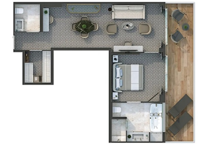 J2 - Junior Grand 2 Suite 87-91 m² (vrátane balkóna 6 m²). 2 spálne, oddelená obývacia a jedálenská časť, kúpeľňa s vírivkou. Junior Grand Suite spojená s Classic Veranda Suite. 6 a 9. paluba vpredu. Max 5 osôb. 41 600 € 20 800 € za osobu
