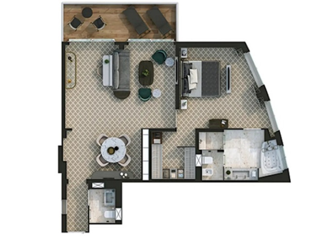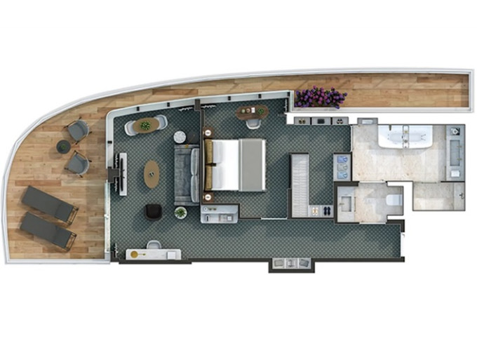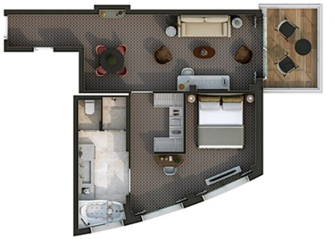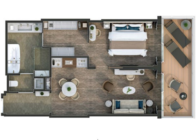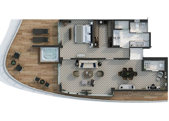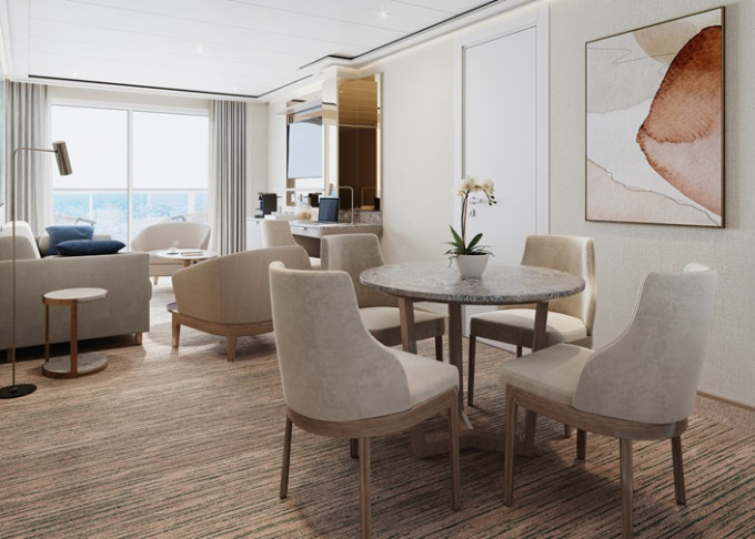 O1 - Owner's 1 Suite 98 m² (vrátane balkóna 16 m²). Spálňa, oddelená obývacia a jedálenská časť, kúpeľňa s vírivkou. 8. paluba - stred. Max 3 osoby. 42 400 € 21 200 € za osobu