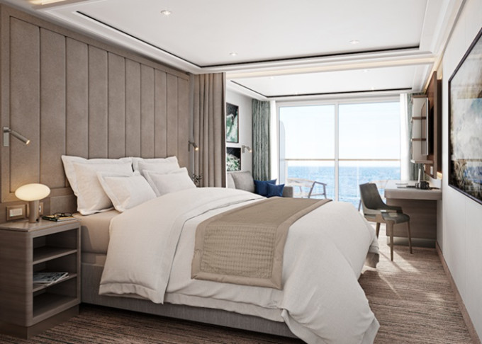 SV - Superior Veranda 33 m² (vrátane balkóna 5 m²). Spálňa s obývacou časťou. 6. až 9. paluba. Max 3 osoby. 17 600 € 8 800 € za osobu