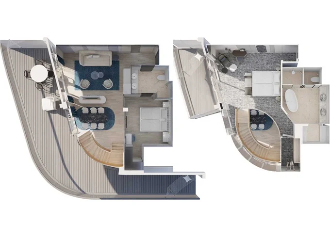 | VEPO - Kajuta s terasou Premium 30 m² + balkón 35 m² so stoličkami, ležadlami a hojdacou sieťou. 15. paluba. Max 2 osoby. | 3 538 € 1 769 € za osobu |